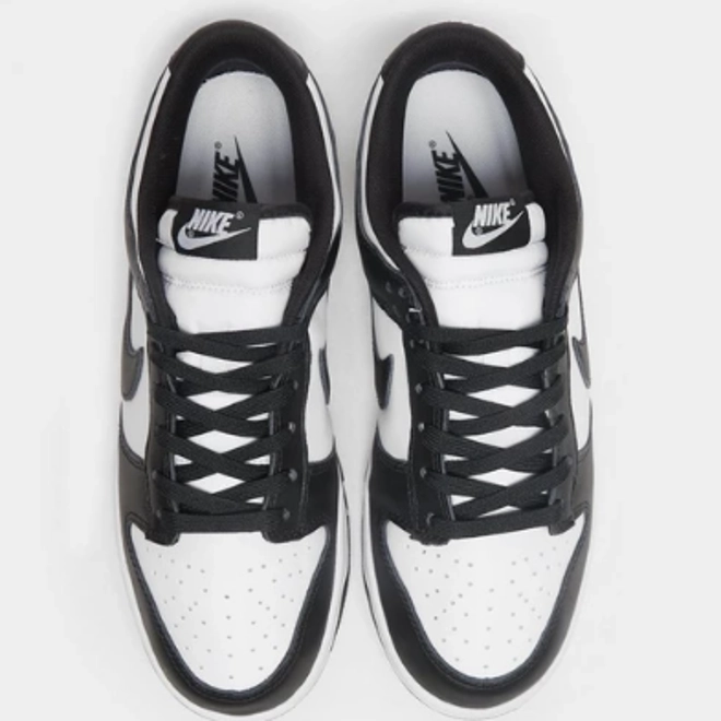 The '85 icon is back with these men's Dunk Low Retro sneakers from Nike. Keeping the OG design lines inspired by college basketball, these low-profile kicks have a premium leather upper in a classic Black and White colourway. They feature a secure lace up fastening, a padded ankle collar and are sat on a soft foam midsole for supreme cushioning. Created for the hardwood but evolved for the streets, these trainers are finished with signature Nike branding and the iconic Swoosh logo to the sidewalls.