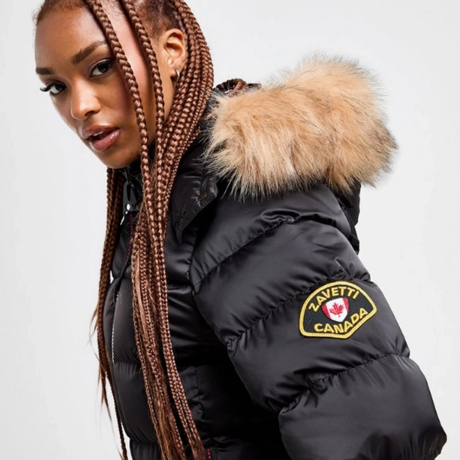 Beat the cold conditions with this women's Virna Slim Puffer Jacket from Zavetti Canada. In a Black colourway, this slim fit jacket is cut from light, water-resistant polyester with recycled poly fill to keep you warm. It features a full-zip fastening and fur-lined hood for custom coverage, with ribbed cuffs for a secure fit and zip-up side pockets for safe storage. Finished up with signature Zavetti branding.
